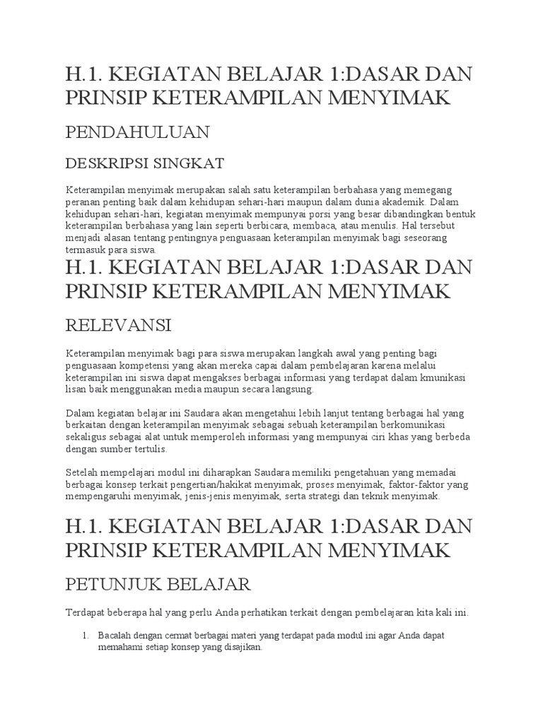 Seorang siswa menyimak gurunya membacakan riwayat perjuangan sisimangaraja menentang Begitu juga berdasarkan uji analisis regresi, diperoleh hasil yang sama. Jurusan pendidikan guru sekolah dasar, fakultas ilmu pendidikan, universitas negeri semarang. Berbicara tentang keterampilan menyimak tidak dapat dipisahkan dari keterampilan bahasa yang lain, yaitu keterampilan berbicara c. Menyimak adalah mendengar secara khusus dan terpusat pada objek yang disimak.